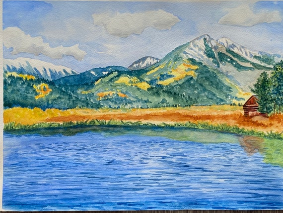 Watercolor Painting Watercolor Tutorial Of Simple Mountain And Lake Lan Landscape Painting Tutorial Watercolor Mountains Tutorial Mountain Landscape Painting